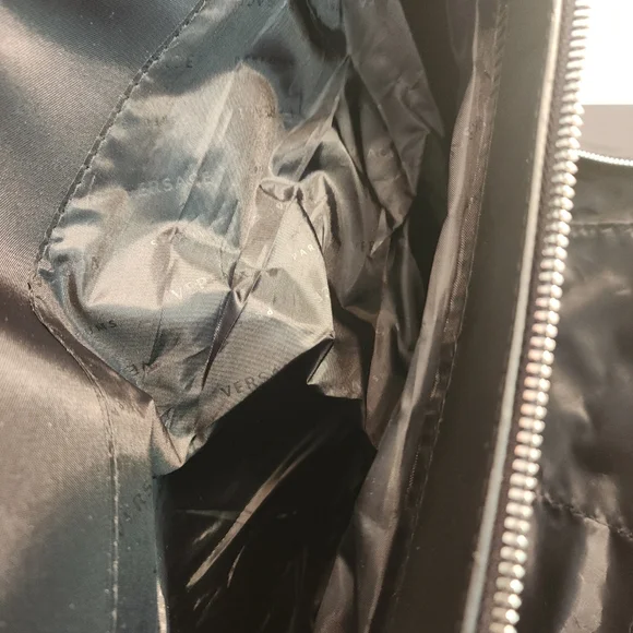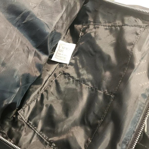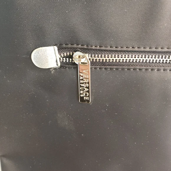 VERSACE PARFUMS Black with metallic silver Tote Bag. Condition is NEW WITHOUT TAGS.Bag isapproximately 15" wide x 11" high x 6" deep. Comes with 60" Shoulder Strap. Doesnot come with dust bag.This item is being sold AS IS, as in pictured condition. Final sale. No returns.No warranty is expressed or implied by us. We examine all our items carefully for damage or signs of wear to point them out whenever we find anything. However, we encourage you to examine each picture as they are part of the item's description and exactly what you will receive.Ask any questions before buying. Once you place order you acknowledge receiving item AS IS.Please visit our Ebay Store for other great items! All of our items are stored in a smoke and pet free environment. *We Consider Most Reasonable Offers.*